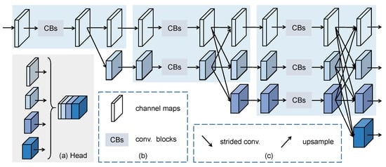 Inspired by High-Resolution Network [], we develop a carefully modified HRNet containing three stages as the shared backbone network, which can be end-to-end trained. The input is first fed into a stem consisting of two convolutions with stride 2 for resolution reduction, and subsequently transmitted the main body that includes parallel multi-branch convolutions with different resolutions. The main structure is illustrated in Figure 2, while the network architecture is shown in Table 1.