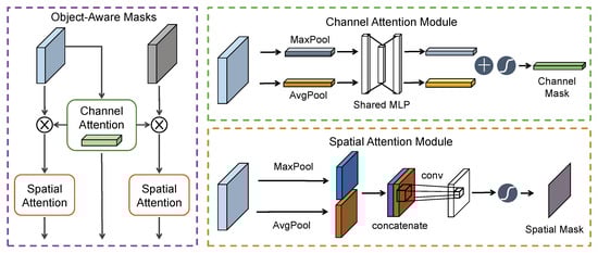 Illustration of the proposed object-aware mask module. The (left) figure illustrates the entire structure, while the (right) one shows each attention sub-module in detail.