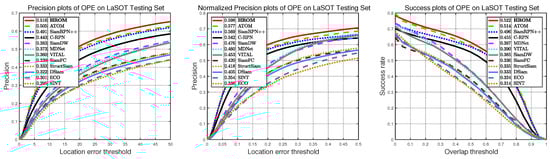 - Fan, H.; Lin, L.; Yang, F.; Chu, P.; Deng, G.; Yu, S.; Bai, H.; Xu, Y.; Liao, C.; Ling, H. LaSOT: A High-Quality Benchmark for Large-Scale Single Object Tracking. In Proceedings of the 2019 IEEE Conference on Computer Vision and Pattern Recognition (CVPR), Long Beach, CA, USA, 16–20 June 2019. [Google Scholar]