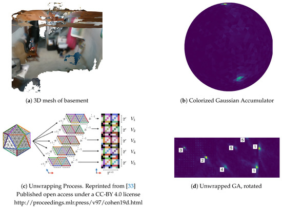 - Toony, Z.; Laurendeau, D.; Gagné, C. Describing 3D Geometric Primitives Using the Gaussian Sphere and the Gaussian Accumulator. 3D Res. 2015, 6, 42. [Google Scholar] [CrossRef]