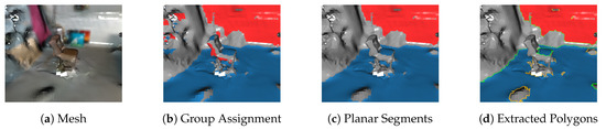 - Biswas, J.; Veloso, M. Planar polygon extraction and merging from depth images. In Proceedings of the 2012 IEEE/RSJ International Conference on Intelligent Robots and Systems, Vilamoura, Portugal, 7–12 October 2012; pp. 3859–3864, ISSN 2153-0858. [Google Scholar] [CrossRef]