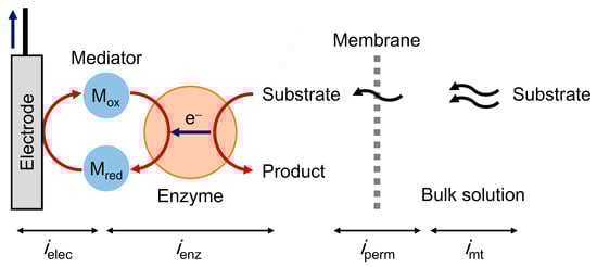 The steady-state MET-type bioelectrocatalysis can be explained based on a serial resistance model. In this model, we assume a set of series reactions (Figure 1): (1) mass transfer, (2) membrane permeation, (3) enzymatic reaction and (4) electrode reaction. The steady-state current (is) can be expressed as follows: