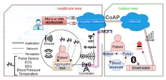 - Sonune, S.; Kalbande, D.; Yeole, A.; Oak, S. Issues in IoT healthcare platforms: A critical study and review. In Proceedings of the 2017 International Conference on Intelligent Computing and Control (I2C2), Coimbatore, India, 23–24 June 2017; pp. 1–5. [Google Scholar] [CrossRef]