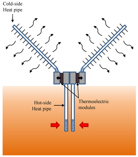 Schematics of a geothermal thermoelectric generator (GTEG) with heat pipes as heat exchangers.
