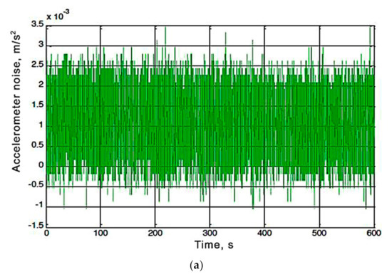 - Rudyk, A.V. Analysis of the errors of MEMS accelerometers by the Allan variation method; Bulletin of Zhytomyr State Technological University: Zhytomyr, Ukraine, 2017; pp. 100–109. [Google Scholar]