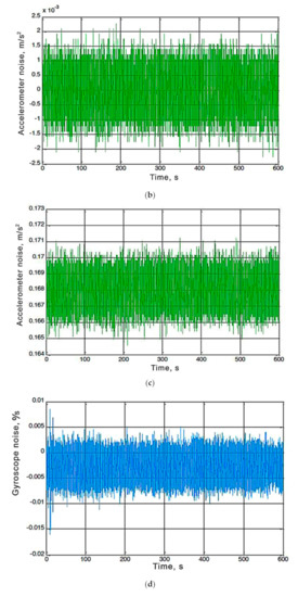 The random error components of gyroscopes, which are inertial sensors, are defined by the presence of noise and noisy processes of various kinds [11,20]: