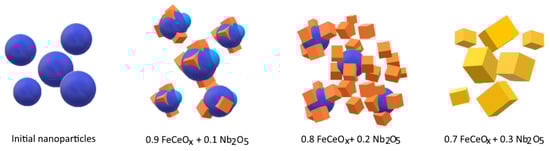 Schematic representation of the transformation of the geometry of the synthesized nanoparticles as a result of an increase in the concentration of the dopant Nb2O5.