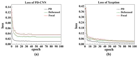 (a) The training curves of PD-CNN. (b) The training curves of Xception.