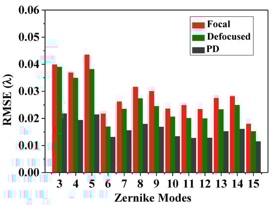 The accuracies (RMSEs:) of each Zernike coefficient estimated by PD-CNN across 3000 samples.