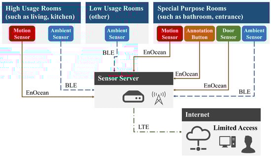 - Matsui, T.; Onishi, K.; Shinya, M.; Fujimoto, M.; Suwa, H.; Yasumoto, K. Easy-to-Deploy Living Activity Sensing System and Data Collection in General Homes. In Proceedings of the 2020 IEEE International Conference on Pervasive Computing and Communications Workshops (PerCom Workshops), Austin, TX, USA, 23–27 March 2020; pp. 460–465. [Google Scholar]