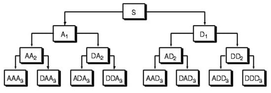 where and are the subspaces of , , corresponds to , and corresponds to . The decomposition space of multiresolution analysis is . In order to make it easier to compare, we use to represent , and the general expression of wavelet packet decomposition is as follows: