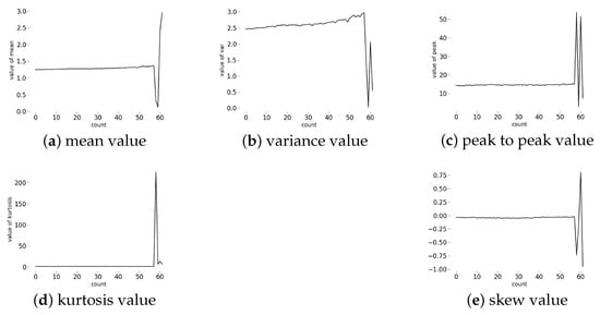After signal filtering, we use time domain technology to extract features of the signals (described in Section 3.1). Considering that the skewness does not have a good effect on all cutting tools, it reflects the degree of symmetry of the signal, while the current signal performs better in symmetry in the experiment. We choose the four characteristics of mean, variance, kurtosis, peak-to-peak value as the input of neural network, indicating the stability of the signal, the degree of fluctuation, the amplitude of the fluctuation, and the abnormal situation, in order to comprehensively characterize the change information of tool wear on the current signal. Finally, we get the input data of the network by under-sampling with the four feature methods, as shown in Figure 10.