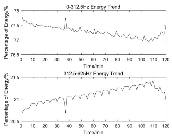 Energy trend of the top two frequency bands, the top picture described the energy change of the band 0–312.5 Hz, the bottom picture indicated the energy change of the band 312.5–625 Hz.