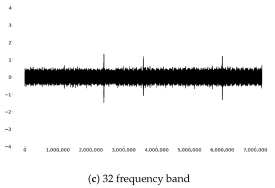 In Figure 7, ordinates represent different frequency bands, with frequencies increasing from bottom to top. Each band has a bandwidth of 312.5 Hz, such as 31 for 0–312.5 Hz, 32 for 312.5–625 Hz, and 36 for the seventh frequency band of 1875–2187.5. The abscissa indicates the time. The darker the color of the frequency band is, the higher the energy is.