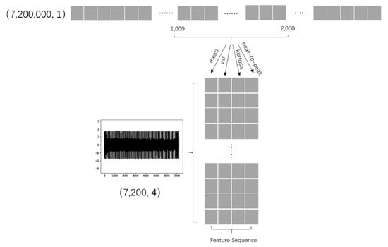 The characteristic calculation is carried out at every 1,000 points, so that the original current data of 6 min is under-sampled to 7200 × 4 (four characteristics).