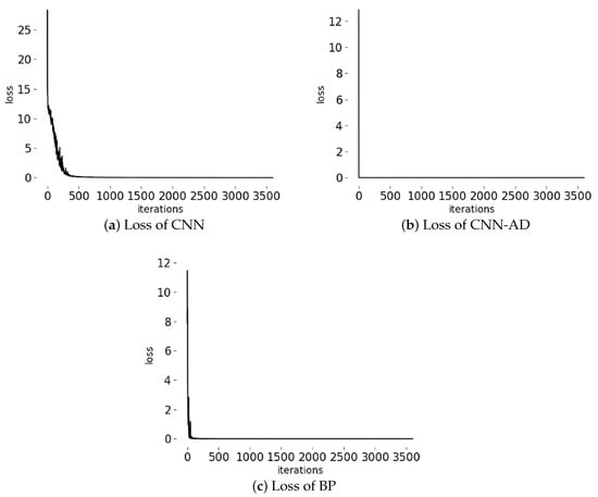 Figure 12 shows the loss of CNN-AD, CNN and BP; it indicates that normal process samples are similar and easier to fit. During the training step, CNN-AD reaches convergence just in 10 iterations, that is because CNN-AD is trained only with positive samples, and positive samples are very similar to each other, which is due to fast convergence. CNN convergence requires 300 iterations, BP reaches convergence in 100 iterations. Although BP converges faster than CNN, the results of BP are fluctuating. BP is not stable, its accuracy often has more than 80% or less than 60%. CNN is stable, the accuracy of CNN is stable at more than 95%. This may be because CNN is more complex and has more parameters than BP.