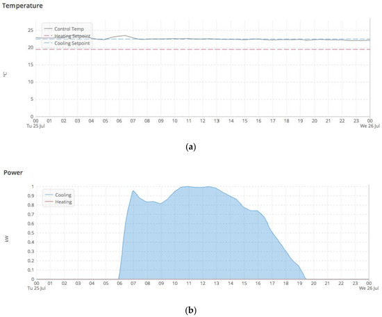(a) Control temperature, heating and cooling set points (b) Cooling power consumption for a Terminal Unit.