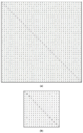 (a) TU shared face matrix (b) State shared face matrix. Each number in the matrix represents the dimension of the face (number of common vertices-1) that each TU or state shares with other TUs or states and 1 indicates no shared face, a face of 0 indicates a single vertex in common between pairs of simplices.