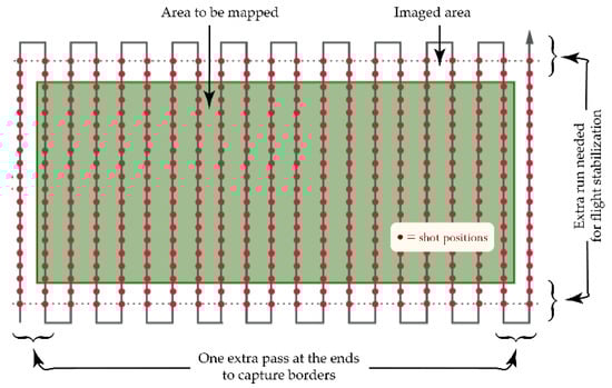 Typical UAV trajectory for an aerial survey (red dots identify shot positions).