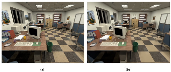 The model of the image is from “office” of “The Persistence of Ignorance” (http://www.ignorancia.org/), and the size of the model is cm. The resolution of the images in the dataset is , and the camera’s field of view is 90 degrees and the intrinsic matrix of the image in the right-handed coordinates can be expressed as