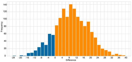 Frequency histogram of the difference between the “stable features” of the denoised and original clean pairs.