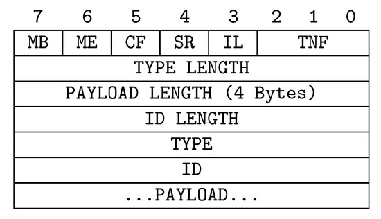 - NFC Forum, Inc. NFC Data Exchange Format (NDEF): Technical Specification. Available online: https://nfc-forum.org/our-work/specification-releases/specifications/nfc-forum-technical-specifications (accessed on 27 August 2020).