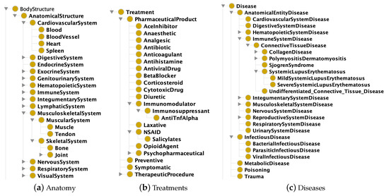 - El-Sappagh, S.; Franda, F.; Ali, F.; Kwak, K.S. SNOMED CT standard ontology based on the ontology for general medical science. BMC Med. Inform. Decis. Mak. 2018, 18, 76. [Google Scholar] [CrossRef]