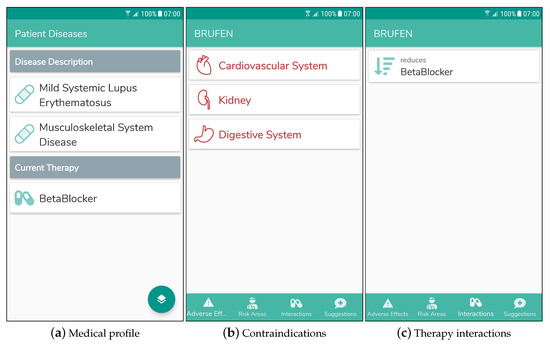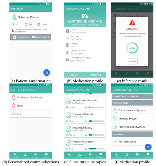 A fully functional mobile prototype has been developed using Android SDK Tools (revision 26.1.1) for the Android Platform version 8.1 (Application Programming Interface—API—level 27). Illustrative examples should clarify the proposed framework by presenting the therapy verification and decision support workflow in a rheumatology unit, with patients affected by connective tissue diseases. Let us consider two purportedly simple examples: