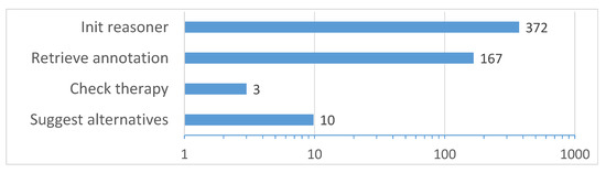 Description Logics (DLs) are a family of logical languages adopted as reference formalism in the proposed framework—the readership is assumed to be familiar with basics of DLs and is referred to [55] for examples and wider argumentation—and specifically the OWL 2 subset whose semantics maps to the (Attributive Language with unqualified Number restrictions) DL. The proposed KG is composed by: (i) a formal conceptual model of the medical domain (the ontology a.k.a. Terminological Box in DL words), shown in Figure 4 and intended as background knowledge for the DSS; (ii) assertions about instances (a.k.a. the Assertion Box), i.e., patients’ medical record and pharmaceuticals annotations, retrieved on-the-fly via NFC. In detail the KG is structured as: