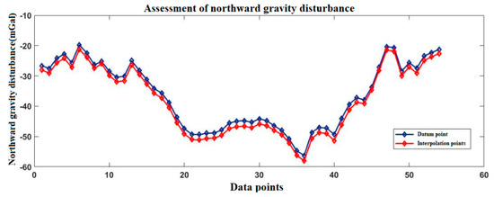 Accuracy evaluation of northward gravity disturbance in the Changzhou area.