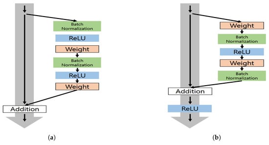 - He, K.; Zhang, X.; Ren, S.; Sun, J. Identity Mappings in Deep Residual Networks. arXiv 2016, arXiv:1603.05027. [Google Scholar]