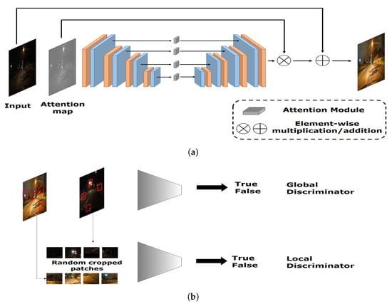 - Kim, G.; Kwon, D.; Kwon, J. Low-Lightgan: Low-Light Enhancement Via Advanced Generative Adversarial Network With Task-Driven Training. In Proceedings of the 2019 IEEE International Conference on Image Processing (ICIP), Taipei, Taiwan, 22–25 September 2019; pp. 2811–2815. [Google Scholar]