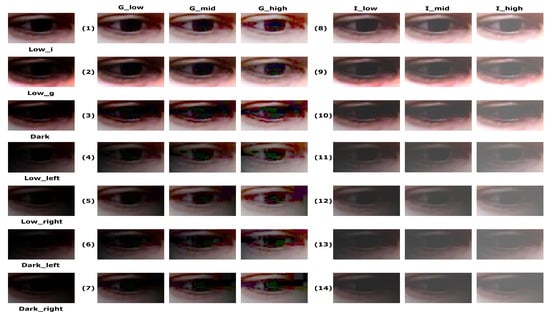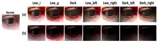 - Would a GAN-based adaptive enhancement method be more effective than a simple method involving manual brightness adjustment? The proposed approach is based on a deep adversarial technique to enhance the appearance of low-light eye images. However, a simple image processing method, such as adjusting intensity or gamma values of an image, can be also considered an alternative way to enhance the appearance of low-light images. To show the effectiveness of the proposed approach with a generative adversarial network, we compared the performance of the proposed approach with those of baseline methods.