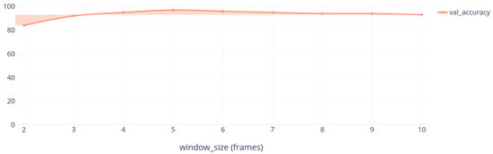 Performance evaluation across different buffer sizes. A buffer size of 5 frames achieved the best accuracy on the evaluation test.