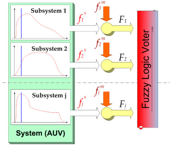 where is the degree of applicability of the rule, is the central value of the membership function, and can be considered as the overall degradation variable: Once the acceptability limit has been set, , the drone will go off-line if the following results: