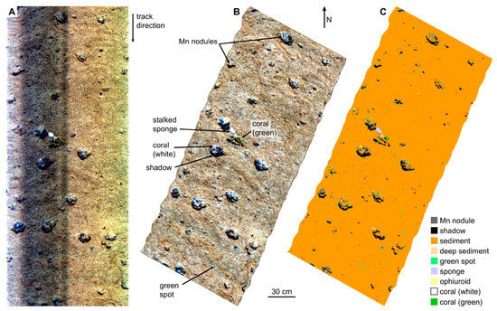 - Dumke, I.; Nornes, S.M.; Purser, A.; Marcon, Y.; Ludvigsen, M.; Ellefmo, S.L.; Johnsen, G.; Søreide, F. First hyperspectral imaging survey of the deep seafloor: High-resolution mapping of manganese nodules. Remote Sens. Environ. 2018, 209, 19–30. [Google Scholar] [CrossRef]