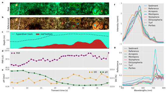 - Chennu, A.; Faeber, P.; De’ath, G.; de Beer, D.; Fabricius, K.E. A diver-operated hyperspectral imaging and topographic surveying system for automated mapping of benthic habitats. Sci. Rep. 2017, 7, 7122. [Google Scholar] [CrossRef]