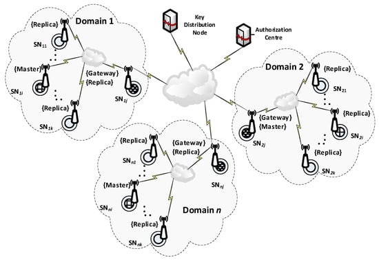 The clients of the KGR system will be mobile sensor node networks. Each sensor node network forms one secure sensor node domain [,] in which data exchange is cryptographically secured. Security mechanisms implemented in this domain also ensure the generation and distribution of cryptographic keys inside the domain and cryptographic protection of the resources of each node.