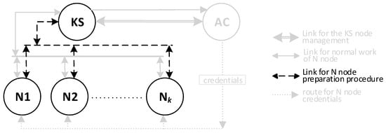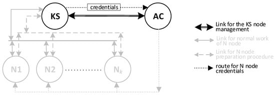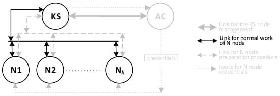 - KS node (Key Server)—the node that is equivalent to the Key Distribution Node in Figure 1 and will be the source of the cryptographic keys;
