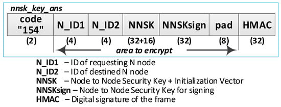 During one key generation operation, the KS node will prepare two symmetrical keys, NNSK and NNSKsign, which will be used by a pair of nodes—Nm and Nn. The NNSK key (Node to Node Security Key) will be used to encrypt data sent between the Nm and Nn nodes, and the NNSKsign (Node to Node Security Key for signing) key will be used to prepare the HMAC for transmitted data. The sequence of activities carried out during one key generation operation can be described as follows: