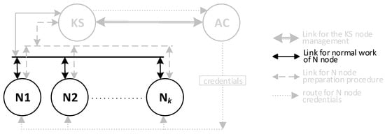 Each cryptographic key loses its validity and must be renewed, regardless of how the cryptographic key was generated, what the key was used for, or how it was stored. Too long using the same key makes it easier to guess by unauthorized persons. A separate and very important problem is determining the criterion of validity of the cryptographic key. As a measure of the “consumption” of the key, you can use the passage of time from the moment the key is generated, the number of data portions (e.g., frames) secured with the key, or the size of the data (calculated in bytes) secured with the key, etc. The KGR system does not provide mechanisms for determining the key renewal criterion, and these issues are not the content of the study. In contrast, the KGR system is ready to renew keys upon request of N-type nodes.