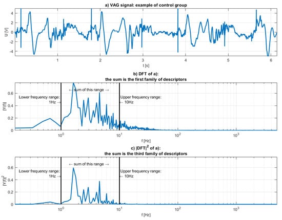- squared DFT of the VAG signal, from which the third feature family is obtained, using Equation (6),