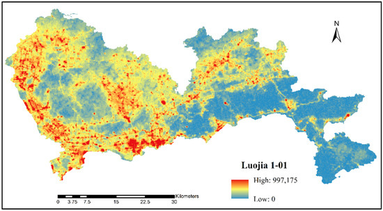 With the rapid development of remote sensing technology, the world’s first professional luminous remote sensing satellite designed by Wuhan University, Luojia 1-01 (LJ 1-01), was successfully launched in June 2018. Compared to NPP-VIIRS data, LJ 1-01 data have a significant improvement in spatial resolution and quantitative level, which provide a more refined data source for small-scale population distribution simulations [24,25,26]. These incomparable advantages make it an important supplement to NTL data products; however, its current application in the study of population spatialization (especially at the urban scale) is almost non-existent. Researchers have shown that the majority of the world’s population is concentrated in low-altitude plains [27], and the two types of HSI proposed in previous research would be not applicable to study the urban population distribution in such low-altitude areas. Road network density (RND) is an important variable for simulating urban population distribution, as the road grid bureau is the spatial structure of urban population distribution [28]. Considering the importance of RND in simulating social and economic parameters (such as population and gross domestic product), there are few studies utilizing RND for correction to improve the HSI.