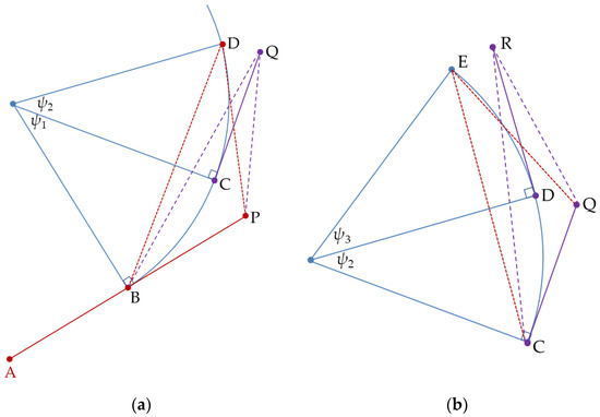 Step 5: Based on the predicted position Q calculated by the 2PT algorithm and the position measurements C and D, the predicted position E at the next time-step is calculated by the 2PC algorithm, according to Equation (42). Then, the next time-step predicted position R is calculated by the 2PT algorithm, according to Equation (43), as shown in Figure 1b.
