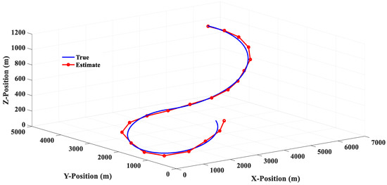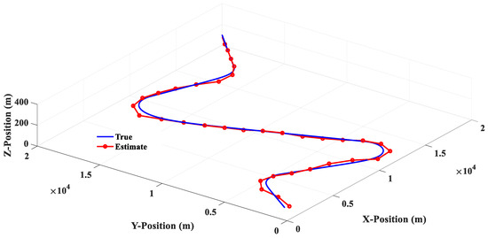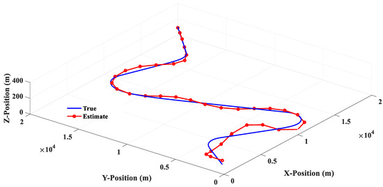 In practice, the update rate of the radar ranges from 4.0 to 0.2 Hz. A general mechanical scanning radar has a low update rate (usually less than 1.0 Hz). An electronically scanned array radar has a faster update rate that can go even higher than 10 Hz. Therefore, an update rate higher than 1.0 Hz is called a fast update rate, and an update rate lower than 1.0 Hz is called a low update rate. In this paper, low update rate radar is taken as the research subject. In order to highlight how the proposed algorithm can effectively deal with the problems faced by a low update rate radar in tracking maneuvering targets, the update rate was set at 0.5 Hz (sampling time is ts = 2) during the simulation verification.