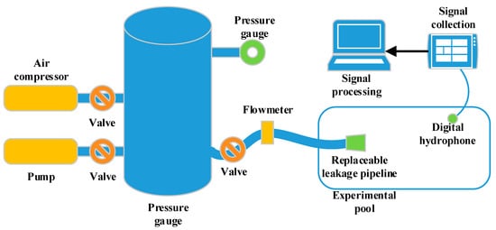 Most detection techniques rely on the measurement of a physical quantity or reaction to a physical phenomenon, such as the acoustic, flow rate, pressure, gas sampling, optics, etc., and their combinations [5,6,7,8,9]. Among the current fault diagnosis methods for the oil and gas pipeline leakage, some are only suitable for the specific operating environment (e.g., soil–gas sampling method [10]) or mainly designed for gas leakage (e.g., ultrasonic flowmeter [11]); moreover, some sensors are difficult to install and the maintenance is costly (e.g., distributed optical fiber sensor method [12] and cable sensor [13]). Methods for infusion pipeline design (e.g., digital signal processing method [14]) need to retrofit existing pipelines. Especially, the fluid-model-based method [15,16] requires modeling of the piping system, and is suitable for small leakage and location. Because the acoustic wave propagates farthest as a mechanical wave in the ocean, underwater sound carries the noise information of the pipeline leakage and can be used to monitor the leakage in real-time.