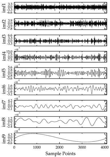 - Huang, N.E.; Shen, Z.; Long, S.R.; Wu, M.C.; Snin, H.H.; Zheng, Q.; Yen, N.C.; Tung, C.C.; Liu, H.H. The empirical mode decomposition and the Hubert spectrum for nonlinear and non-stationary time series analysis. Proc. R. Soc. A Math. Phys. Eng. Sci. 1998, 454, 903–995. [Google Scholar] [CrossRef]