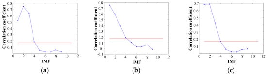When the correlation coefficient is obtained, filter the sensitive IMF components according to the threshold calculation Equation (8) [33].