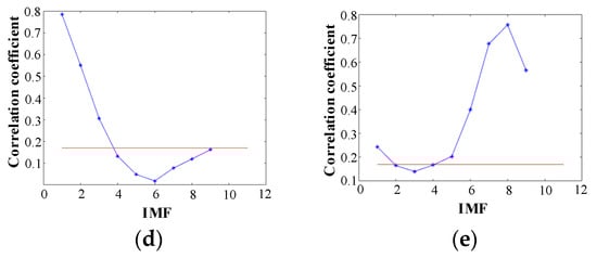 where is the threshold and is the correlation coefficient between the i-th IMF component and the original signal. Take (IMFi) as an effective IMFk to reconstruct the signal as