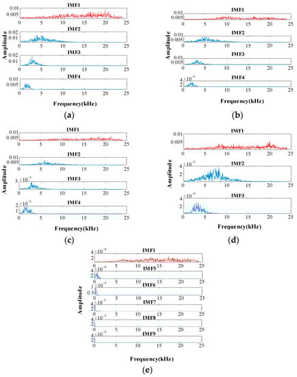 The various effective IMF component spectra of DN20. (a) 0.30 MPa; (b) 0.25 MPa; (c) 0.20 MPa; (d) 0.15 MPa; (e) Not leak.